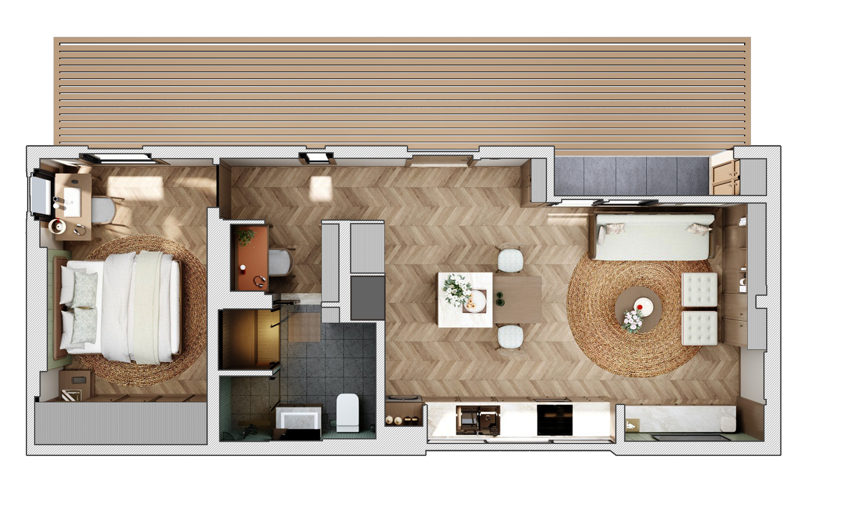 59.88 m² of space that earns its keep. Every room has purpose. Every corner, considered.